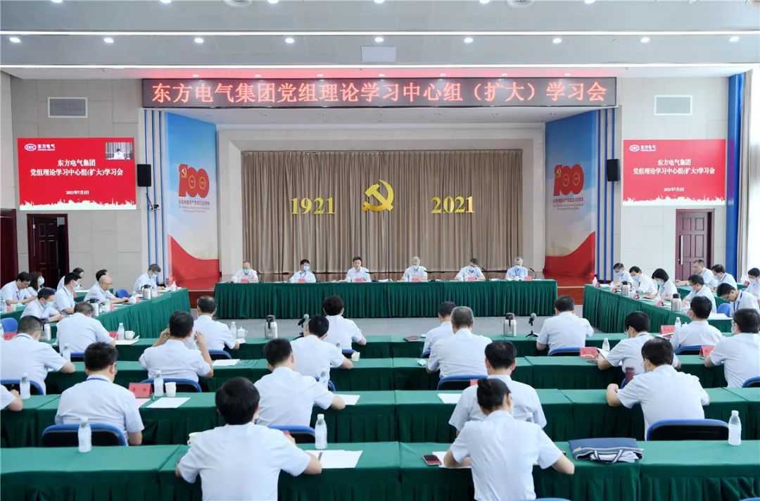 2021年7月2日,尊龙人生就是博ag电气集团党组召开理论学习中心组(扩大)会议,深入学习传达习近平总书记致白鹤滩水电站首批机组投产发电的贺信精神。