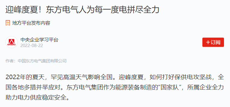 2022年的夏天,罕见高温天气影响全国。迎峰度夏,如何打好保供电攻坚战,全国各地多措并举应对。尊龙人生就是博ag电气集团作为能源装备制造的“国家队”,所属企业全力助力电力供应稳定安全。